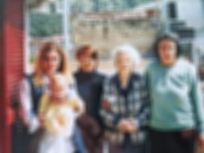 Le quattro generazioni, io a un anno in braccio a mia madre, poi mia nonna Lena, accanto a lei sua madre, la mia bisnonna Rosa Piatti.